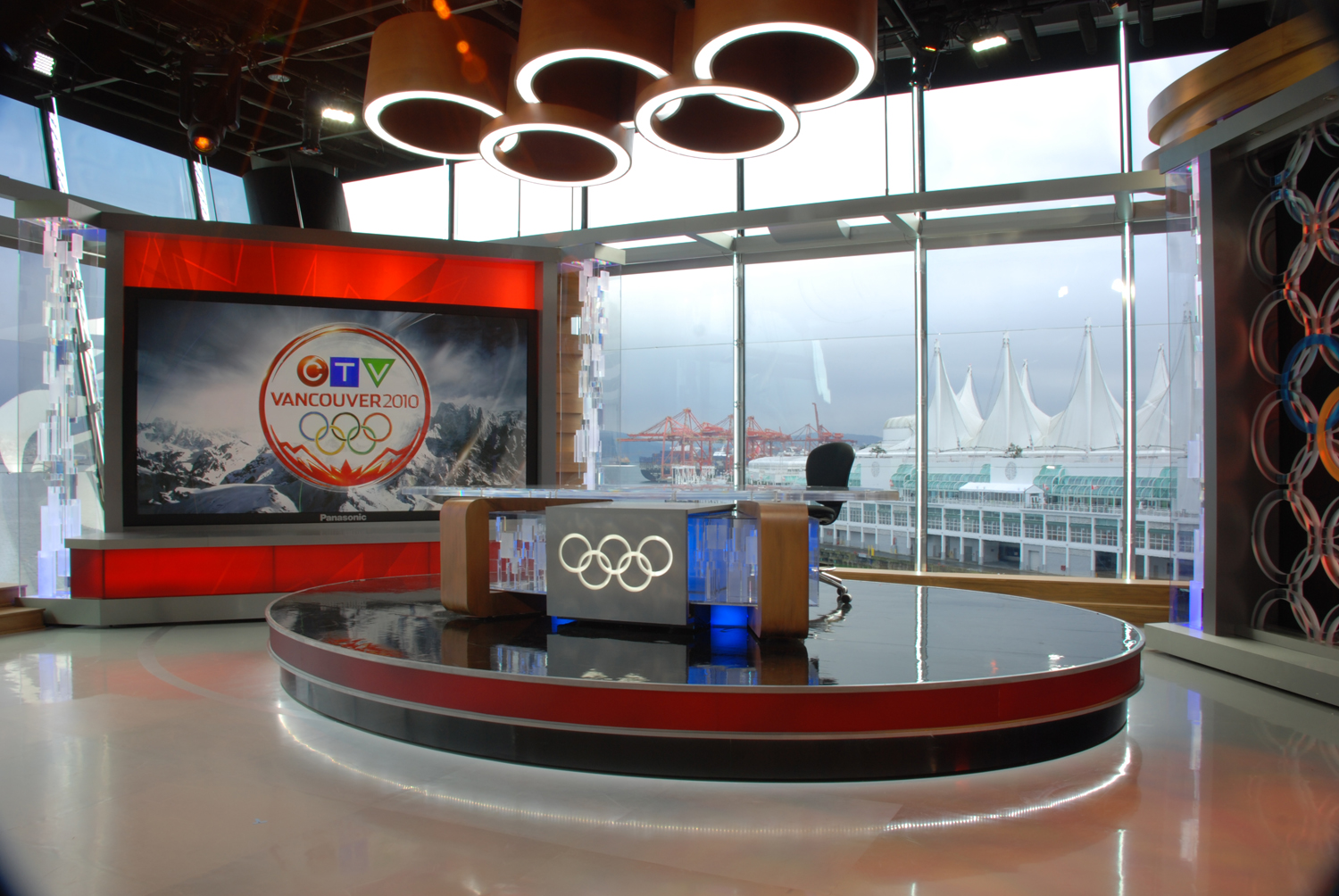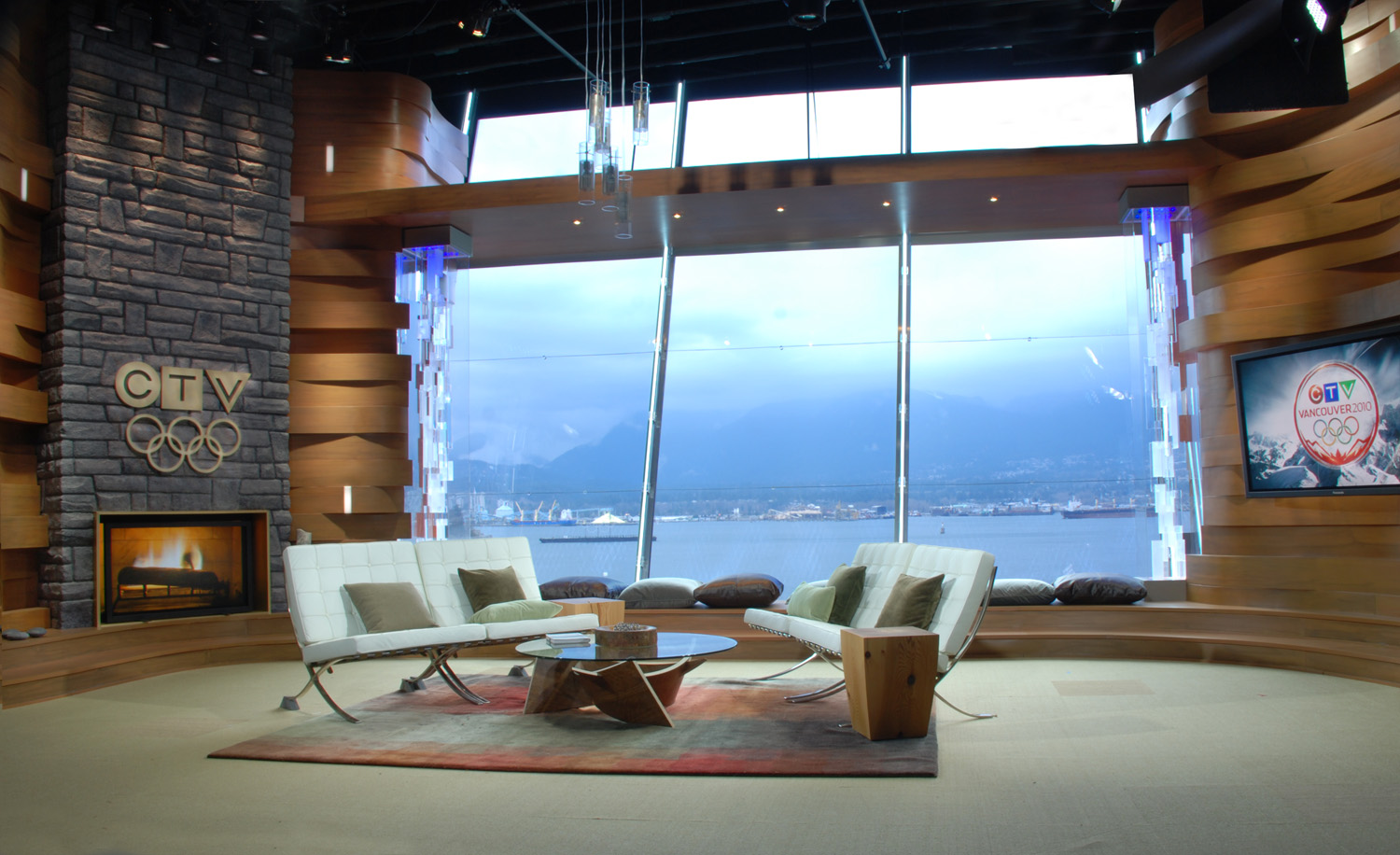 Due to its public appeal, the set was later moved to the CTV local News Studio in Vancouver as their permanent evening news set. All sets were designed in association with Jack Morton/PDG and built by BlackWalnut.