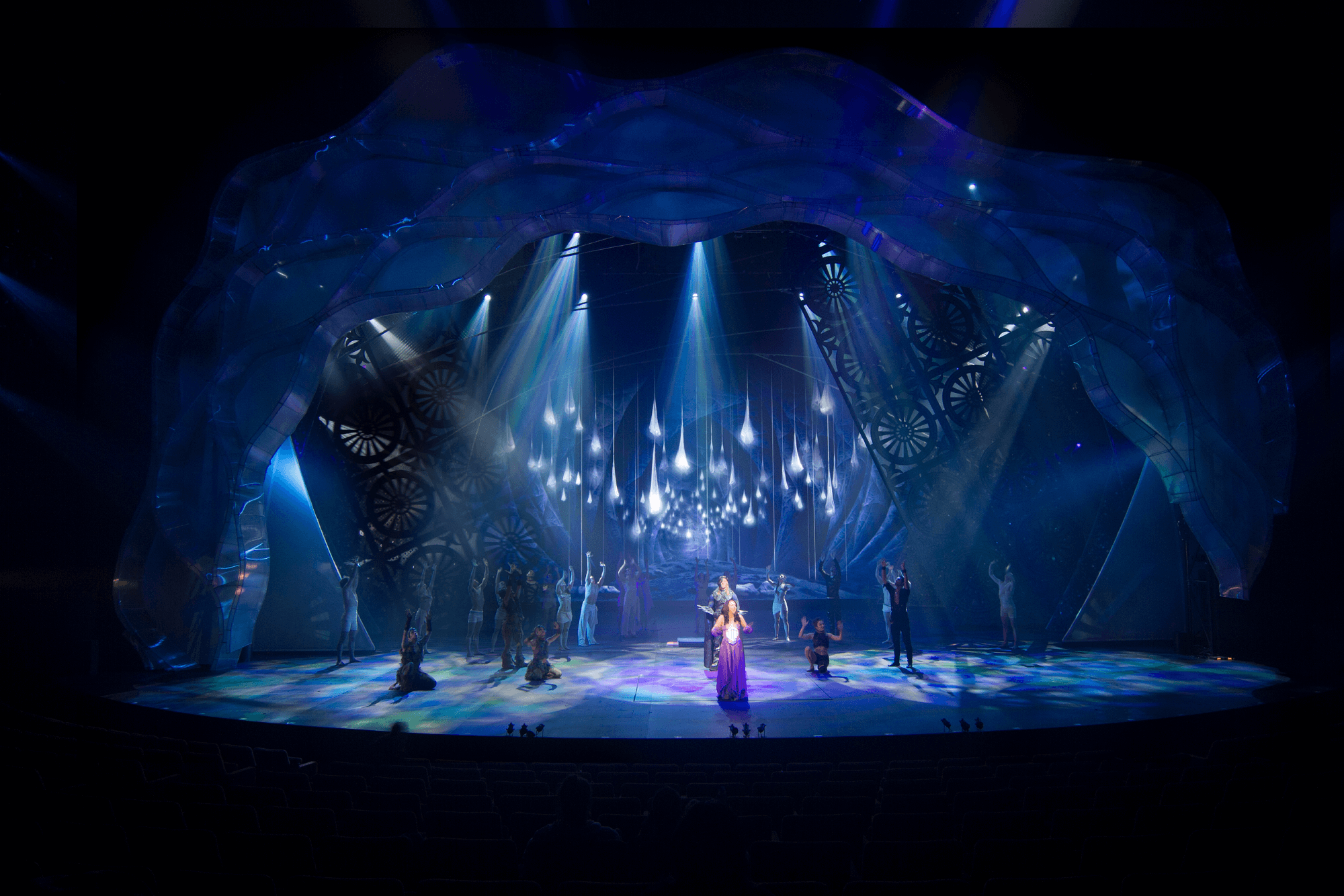 A modern fantasy that takes a cinematic approach to visual styling and storytelling. Musical theatre (songs by Dick Lee) incorporating Spectacle, dance, acrobatics, and action packed stunts. The set seamlessly integrates physical props and scenery with multimedia projection, special effects, and computer generated images on a 10x20m LED backdrop providing a dynamic environment that brings the production to life with movement, light and energy.